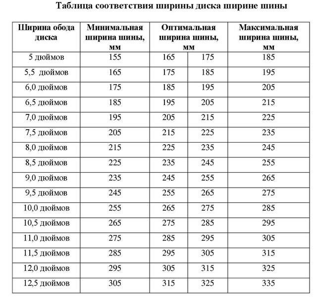 Для низкопрофильных шин (профиль 40-45%) таблица смещается в сторону более широких дисков. Для высокопрофильных (65-80%) — в сторону более узких.